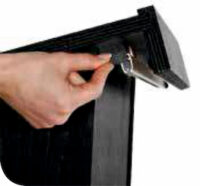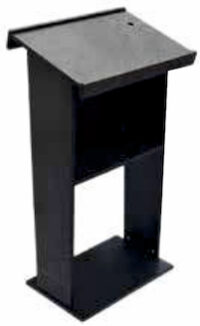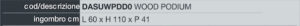 Podio in legno di faggio, utilizzabile come banco per presentazioni e conferenze, ma anche come punto di accoglienza. Ideale in zone come hall, hotel, centri conferenze, università, sale polivalenti, punti di smistamento, zone di ingresso e punti di registrazione. L’inclinazione a 15 gradi del piano frontale è studiata in maniera ergonomica, per consentire al relatore di mantenere una postura corretta. Sempre sul piano inclinato da 60 x 41 cm (con luce utile per i contenuti 59,5 x 37,5 cm) è presente un foro per il posizionamento del microfono; cui si abbina un ripiano inferiore da 50 x 20 cm per il posizionamento di eventuali contenuti. Sotto al piano frontale è posta una bacchetta lunga 59,7 cm, su cui è possibile far scorrere grafiche realizzate con carta molto strutturata o film (dimensioni finali di stampa L 59,5 x H 100 cm). La barra non supporta banner.